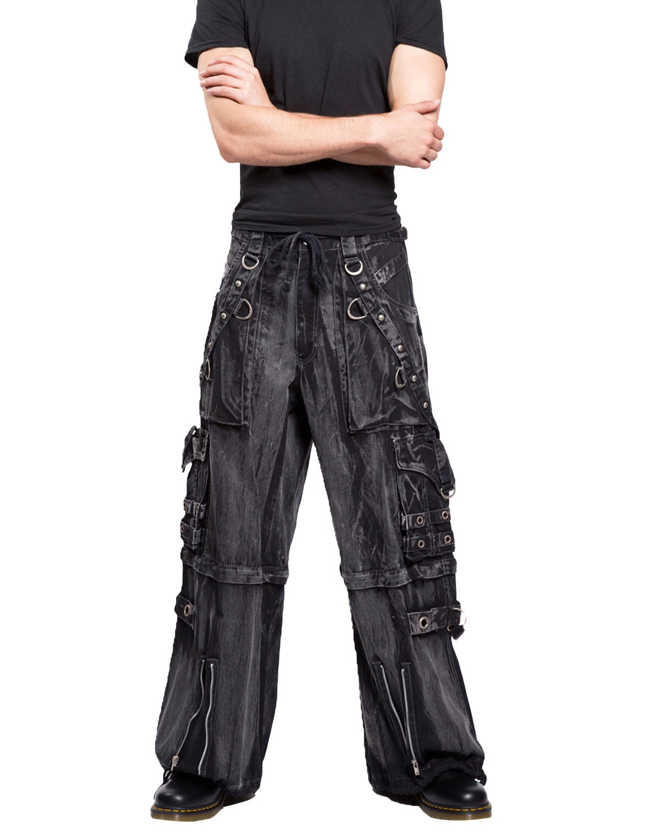 Black Acid Wash Gothic Cargo Pants – Distressed Wide-Leg Rave Trousers