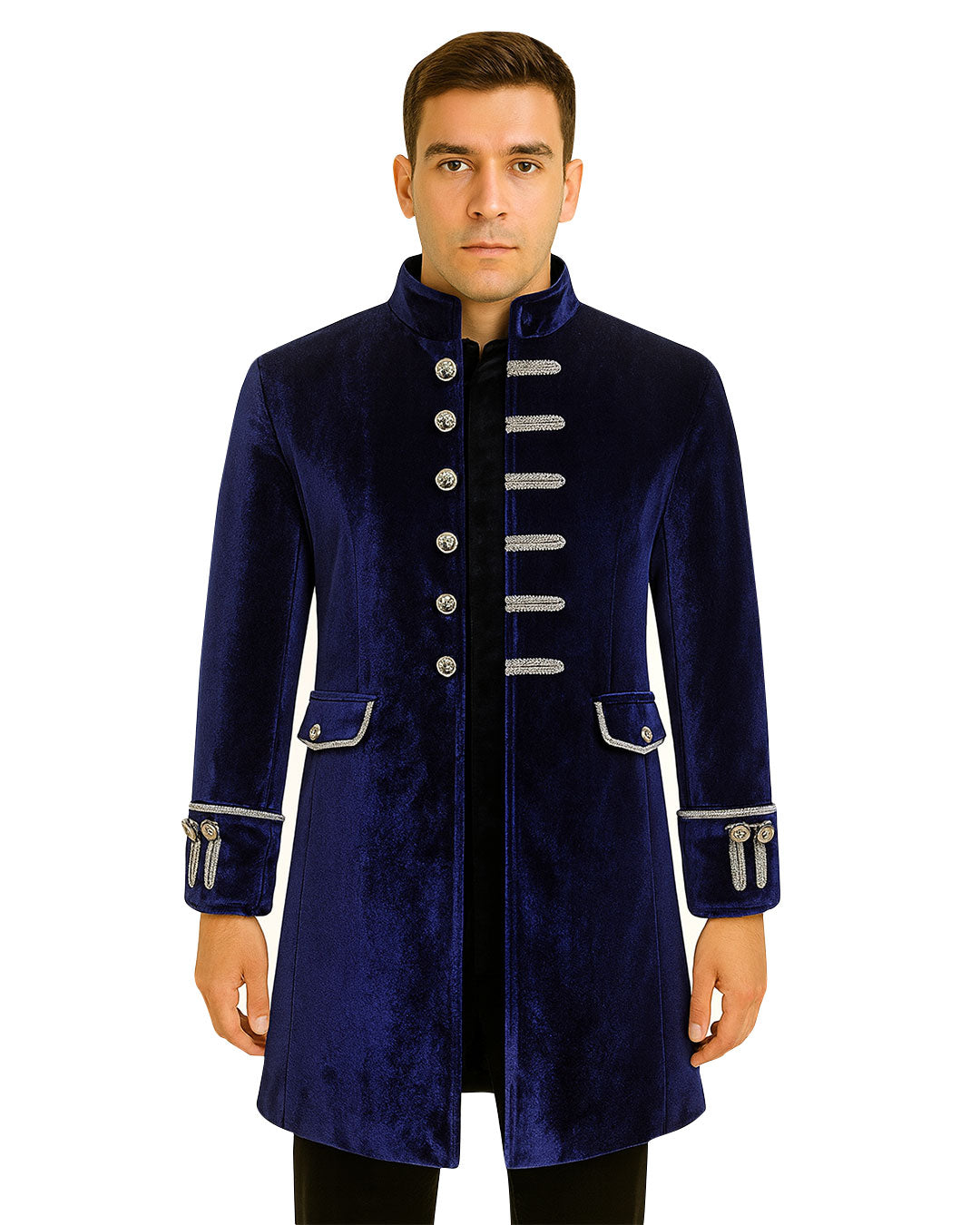 Crafted for those who appreciate bold fashion and timeless sophistication, the Men’s Blue Velvet Gothic Coat is a masterpiece of...