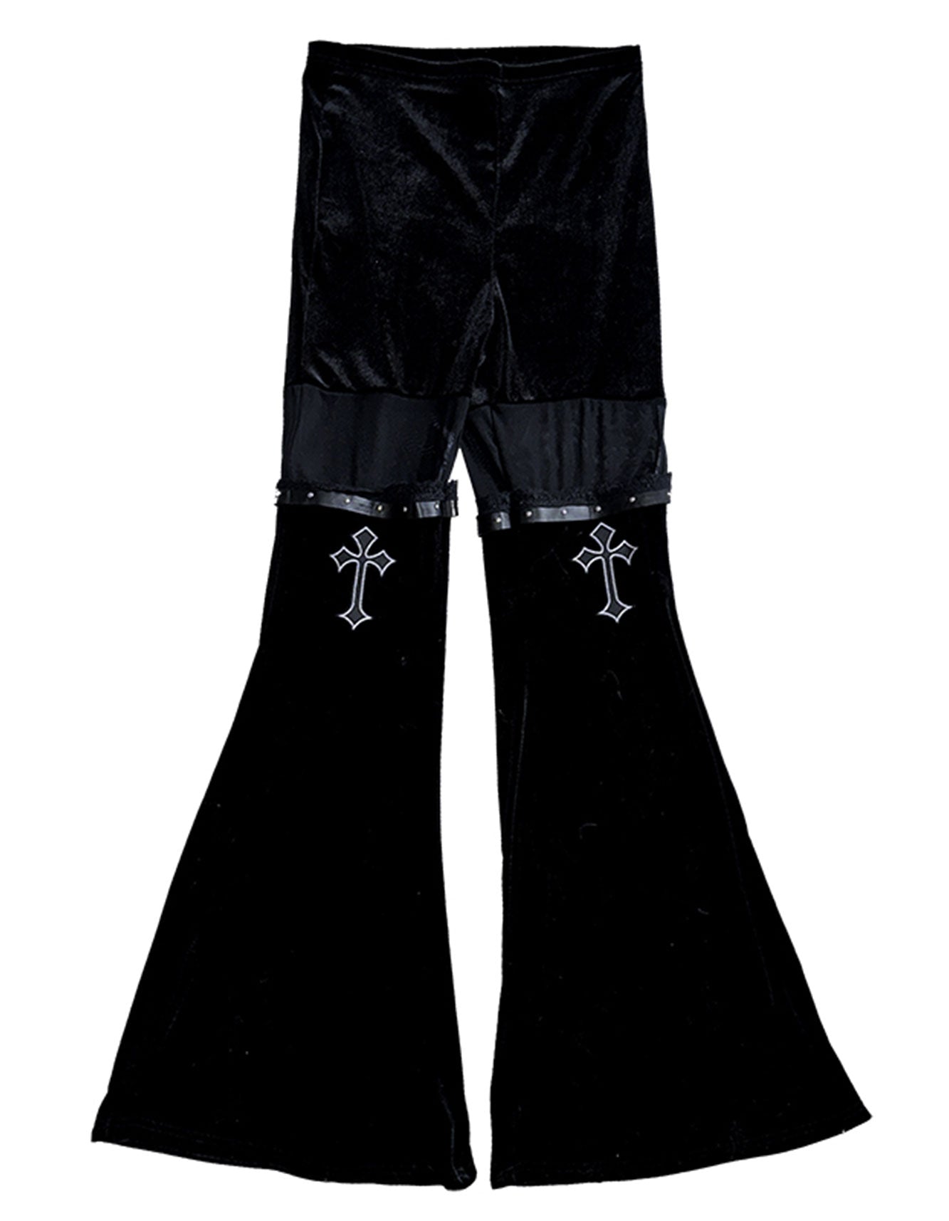 ROMWE Goth Velvet & Mesh Chain Pants – Cross Embroidery Women’s Trousers