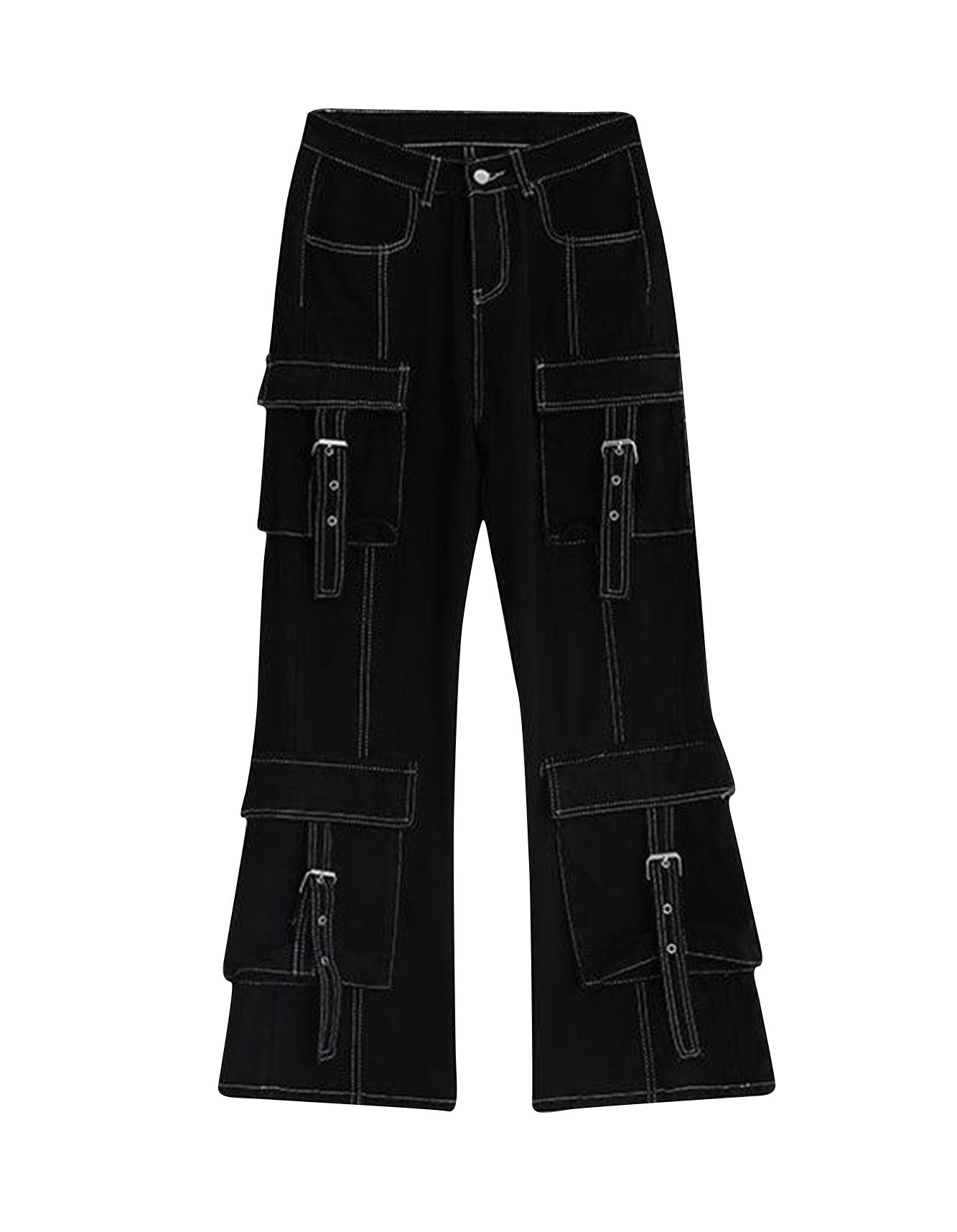 Add a bold edge to your look with the Teen Girl Contrast Stitching Black Loose Fit Low Waist Straight Leg...