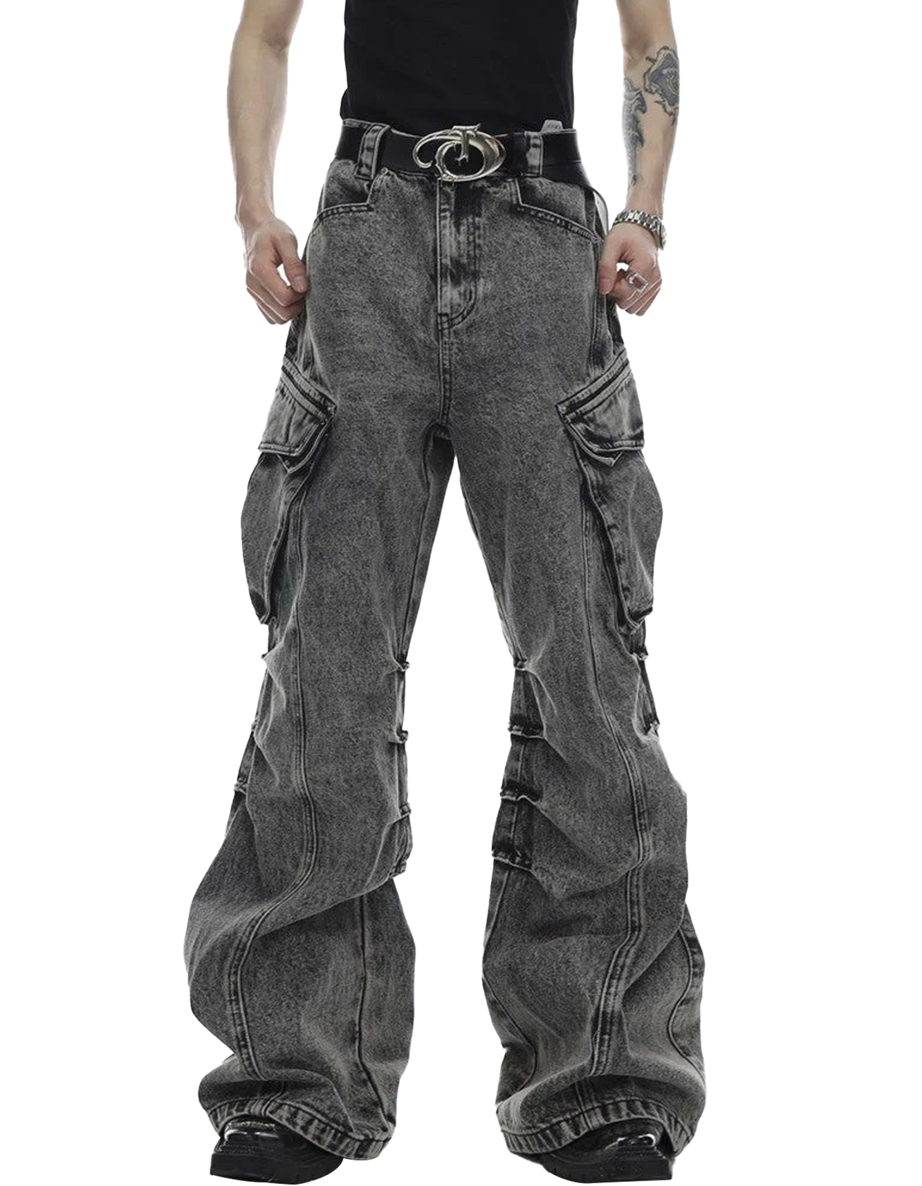 Y2K Unisex Grey Cargo Pants Baggy Jeans Vintage Streetwear Wide Leg Stone Washed Denim Pants